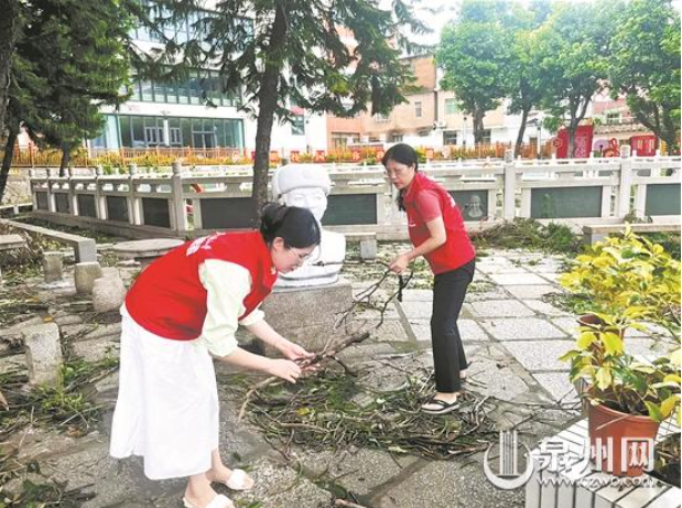 泉州市实验小学教师志愿者整理校园 为扎实做好“杜苏芮”台风灾后救灾重建工作,泉州市实验小学党支部充分发挥战斗堡垒作用和党员先锋模范作用,组织党员教师到校协助排查台风过后校园安全隐患,参与清扫整理校园及周边社区环境等工作。在学校党支部书记、校长何君虹的带领下,党员们对学校掉落的树木枝叶、吹垮的公告牌等进行整理,对校园干道进行清障,大家齐心协力,校园初步恢复了井然有序的面貌。市实小的党员教师们还走出校园,对周边社区道路进行打扫,保障校园周边道路畅通;部分党员还就近参与社区组织的灾后恢复志愿服务活动,以实际行动彰显共产党员的先锋本色。