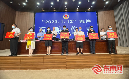 返赃仪式。东南网记者 陈诗婷 摄 东南网8月3日讯(本网记者 陈诗婷 通讯员 田政 陈耀宗 庄凌龙)今年8月3日是晋江刑警受国务院命名表彰“特别能战斗刑警队”24周年的日子。这一天,泉州市公安局召开新闻发布会,通报成功挖掘并打掉一个2020年至今盘踞境外的投资理财“杀猪盘”电信网络诈骗团伙。71名受害者领回他们的被骗资金。 电信网络诈骗团伙浮出水面 2022年5月,晋江市公安局在工作中发现刘某(男,33岁)伙同他人在境外组织实施电信网络诈骗,涉案金额巨大。 对此,泉州、晋江两级公安机关高度重视,迅速组建专案组开展侦查。然而,根据仅有的零散线索,专案组未发现有价值的信息,侦查工作在一开始陷入僵局。 经对案件信息流、资金流、人员流开展大量的线上线下侦查,专案组抽丝剥茧,终于在错综复杂的人物关系中逐步摸清以陈某(男,35岁)、刘某、林某(男,34岁)为首的电信网络诈骗犯罪团伙,一个组织严密、内部分工明确的电信网络诈骗团伙脉络逐渐清晰。 |