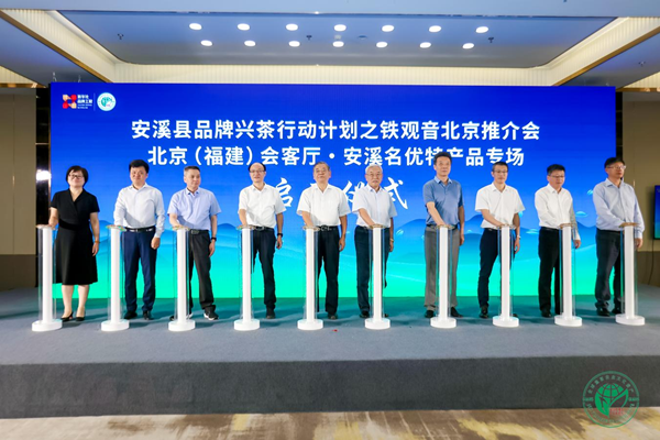 图为安溪县品牌兴茶行动计划之铁观音北京推介会、北京(福建)会客厅•安溪名优特产品专场启动仪式。安溪县委宣传部 供图 捧一片“金叶子” 跨时代新篇章 安溪县县长刘永强在开幕式致辞中介绍,安溪茶人始终保持着“做一杯好茶”的定力,致力让安溪铁观音茶更香、韵更长,每一泡都物超所值。希望通过本次推介会,携手更多茶人“铁粉”、茶企朋友,开展内容更加丰富、形式更加新颖的品牌兴茶活动,努力推动国茶品牌成为世界品牌,让更多国内外茶友爱上安溪铁观音、爱上中国茶文化。 中国茶叶流通协会副会长梅宇认为,此次安溪县品牌兴茶行动计划是安溪县委县政府引领县域茶产业面向全行业与广阔市场开启的一次全新的精彩介绍,更是对未来茶产业如何凝聚品牌力量,聚焦文化、产业、科技协同发展的创新解读。 根据新华社权威发布的《2023中国名茶品牌传播力指数报告》,安溪铁观音位列“中国名茶品牌传播力指数”第一名。在由新华社中国经济信息社组织的“2023大众喜爱的中国茶品牌”评选中,安溪铁观音再获榜首殊荣。 “此次铁观音北京推介会,以文化为引领、以产业为核心、以科技为支撑,对进一步宣传安溪铁观音‘双世遗’文化,提升安溪茶产业竞争力具有积极推动作用。”福建省人民政府驻北京办事处主任施宇辉在致辞中表示,本次活动将为安溪铁观音话语体系的重建、安溪茶产业的高质量发展提供科技动能。 |