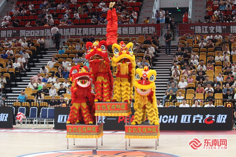 比赛休息间隔舞狮表演。 东南网记者 薛逸群 摄 |