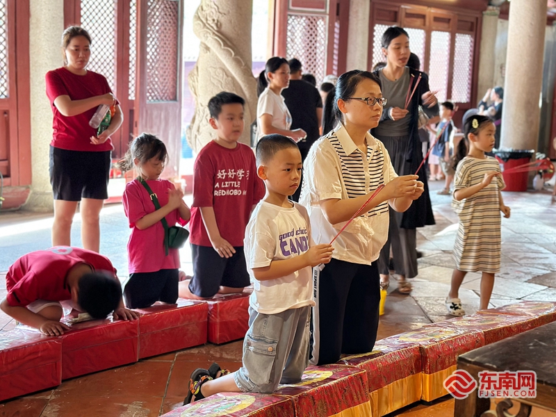 小朋友在家人带领下跪拜孔子像。东南网记者 林婕 摄