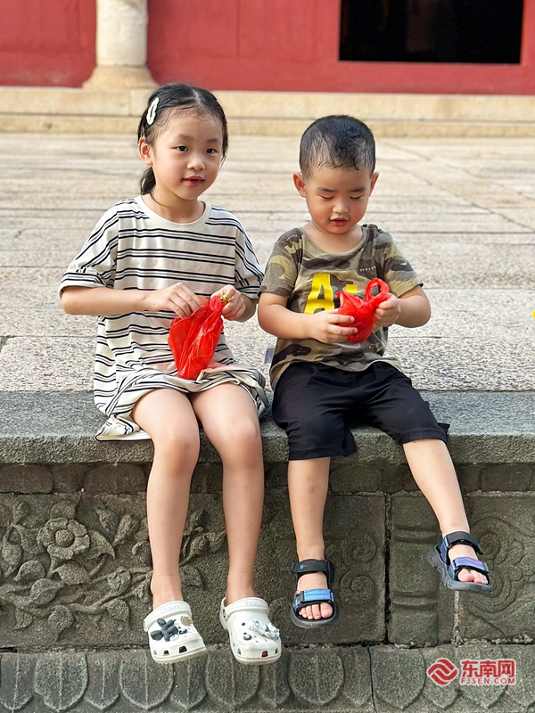 一对姐弟前来领红鸡蛋。东南网记者 林婕 摄