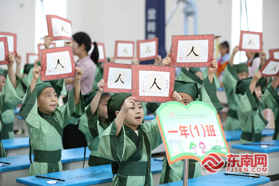 开笔礼上新生们描“人”字。泉州开发区 供图