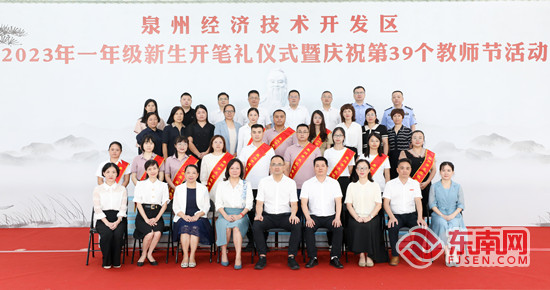 给新生发红鸡蛋。泉州开发区 供图 东南网9月8日讯(本网记者 谢玉妹)正衣冠、点朱砂、描“人”字、分红蛋……新学期伊始,泉州二实小开发区校区为一年级新生们举行了一场中国传统的“开笔礼”。 在第39个教师节来临前,9月7日下午,泉州开发区在泉州二实小开发区校区召开全区教育高质量发展会议暨庆祝第39个教师节活动。 在当天举行的全区教育高质量发展会议上,泉州开发区党工委书记王小阳指出,对于泉州开发区而言,教育不仅是最大的民生工程,也是一张对外招商的名片,是营商环境的“软实力”。一流的教育环境对于吸引留住人才、落地优质项目、促进经济发展具有重大意义。 王小阳就全区教育事业发展提出,要深化教育改革、提升教育质量、实现教育公平,同时也希望,全区教师心中始终装着教育、学问、师德与爱心。“党工委、管委会将一如既往地重视支持教育事业发展,教育项目优先安排、教育资金优先保障、教育需求优先满足。” 据介绍,过去的一年,泉州开发区教育系统持续开展岗位练兵、论文评选、教学公开周等各类教育教学活动,全区小学毕业质量检测和中考成绩捷报频传,一年来,师生在各级各类比赛中获奖184人次。 会上,泉州开发区实验学校教师叶文森、泉州市二实小开发区校区教师林燕鸿分别分享了当好学生引路人的心得体会和对开发区教育工作的意见建议,据悉,两名教师均获评“2023年泉州市优秀教师”荣誉。同时,泉州开发区资规局、财政局两个部门还围绕推动泉州开发区教育高质量发展,提出了下一步工作思路。