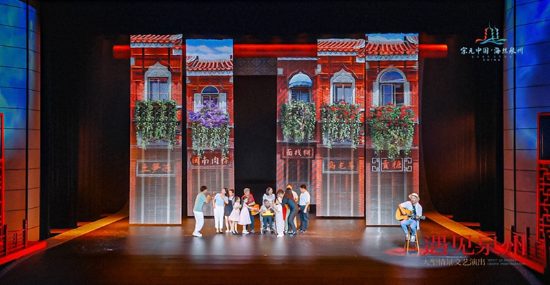 歌曲《花开的街巷》中的情景表演,洋溢着浓浓的泉州韵味。泉州市委宣传部 供图 演出在《世纪远航》中落下帷幕,这是一次代表泉州的文化融合演出,也是一次创新的舞台呈现。据悉该演出将在9月26号起进行常态化商演。