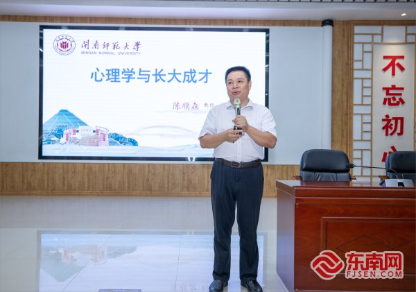 为新聘任心理咨询师及志愿者颁发聘书。黄东华 摄 安溪县委文明办主任杨进宝在致辞中表示,要形成共识,全力推进,继续发挥职能优势,营造良好的心理健康教育环境,不断推动全县未成年人心理健康教育工作深入开展。要真抓实干,务求实效,辅导站要发挥省级示范站的榜样示范、专业引领和辐射带动作用,各中小学校要把本次活动作为落实立德树人的重要抓手,确保巡讲活动取得实效。要深化拓展,扩大影响,以“公益九月”活动为契机,进一步加强辅导站和学校心理辅导室、心理健康教师队伍建设,推动形成“专家+骨干+志愿者”力量,持续构建未成年人社会心理服务体系。要加强宣传引导,积极扩大“公益九月”活动的社会影响力和关注度。 本次活动,邀请省未成年人心理健康成长指导中心主任、闽南师范大学教育与心理学院院长陈顺森教授到场授课指导。陈顺森以《心理学与长大成才》为题,与参会人员进行了分享交流。讲座中,他以丰富的教学方式、风趣幽默的教学语言,引导同学们理解未成年人心理发展规律,帮助大家培养自尊自信、乐观向上的良好心理素质,促进未成年人身心全面和谐发展。