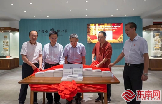 活动现场。主办方 供图 东南网9月20日讯(本网记者 林婕)19日,作为“2023德化国际陶瓷文化周”的重要组成部分及活动亮点,《中国德化白瓷》新书发布会暨入藏县图书馆仪式在德化“中国白博物馆”举行。 中国轻工业联合会副会长、中国陶瓷工业协会理事长杜同和,副理事长董博,福建省文化厅原副厅长陈吉,中国拍卖行业协会会长黄小坚,德化县委常委黄世兴,福建省收藏家协会会长丁建南等领导嘉宾参加新书发行仪式。新书作者陈仁海和杜同和、丁建南等人共同为新书发布会揭幕并进行现场签名赠书。