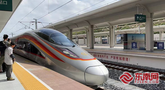 福厦高铁开行的首趟高铁列车抵达泉州。东南网记者 林婕 摄 东南网9月28日讯(本网记者 谢玉妹 林婕)历时6年时间多建设,9月28日,我国首条时速350公里的跨海高铁——福厦高铁正式开通运营。这是继京张高铁、京雄城际后,我国建成投用的又一智能高铁。 智能动车组备受瞩目 市民购票体验首趟列车 当天上午9时53分,由福州南站始发的G9801复兴号列车缓缓驶入泉州南站。列车在泉州经停2分钟后,驶向厦门北站。 “一直很期待福厦高铁,前天开始售票,我昨天就赶紧订票了。”董毓明是泉州职业技术大学的学生,趁着今天上午没课,特意购买了从泉州南站到厦门北站的高铁票,专门体验高铁350公里时速和普通动车的区别。 来自石狮的洪先生今日也特意购票来体验高铁。洪先生告诉记者,因工作原因,他常年往返于福州和厦门,也十分关注福厦高铁的进展。“今天从石狮市区到高铁泉州南站大概用了20分钟,然后十几分钟就能到厦门,对我而言十分便捷。” 复兴号智能动车组无疑是福厦高铁的一道备受瞩目的风景线。按照人机工程原理全面升级的座椅、USB充电插口、无障碍车厢盲文标识、变频空调机组、智能照明系统……相较于普通复兴号动车组,复兴号智能动车组作为新一代高速智能动车组,在智能化、舒适性、安全性等方面实现全新升级。 据中国铁路南昌局集团有限公司客运部副主任杨彬介绍:“福厦高铁开通运营初期,国铁集团每日开行动车组列车8对;四季度调图后,每日开行动车组列车最高达62对。福州至厦门、漳州最快分别55分、89分可达。福州厦门实现“一小时生活圈”,厦漳泉闽南地区实现半小时交通圈。” 泉州南站站长李景隆告诉记者,福厦高铁首发旅客列车车次G9801次,旅客人数543人。高铁开通期间恰逢中秋国庆假期,届时,将根据客流情况调整班次。李景隆也提醒乘车的旅客,如果对路线和进站方式还不熟悉,应提早出行。 |