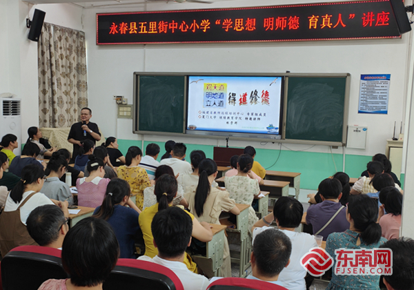 讲座现场。五里街中心小学 供图 东南网9月29日讯 为进一步规范教师职业行为,弘扬教师立德树人、爱岗敬业、为人师表的高尚师德,9月28日下午,永春县五里街中心小学开展了师德教育专题讲座。厦门大学继续教育学院特邀讲师、福建师范大学课程研究中心兼职研究员、福建省中小学教师远程培训中心专家组成员林荣辉应邀到场授课。 活动现场,林荣辉讲师以《学思想 明师德 育真人》为题作了交流分享。他强调“有”“无”相生的境界,结合案例从“观天道、明地道、立人道”三个版块一一讲解,在“道”中徐徐引出师德,告诫教师们要好学“涨”势,要大爱无疆,要润物无声,要将师生的“你我”独立身份合为“我们”,以仁义之道处世,做个幸福的老师。 讲座结束后,学校党支部书记、校长刘冰晶作了发言。他说道,德是立世的基础,德的修行永远在路上。善良、爱心、包容是一个老师必备的品质,要修德、学做人、学做事,要做一个爱学习的老师。 通过这次活动,老师们纷纷表示收获很大,受益匪浅,既学到了相关知识,又对照师德标准对自己的学习、工作、生活行为找到了优缺点,大家将不断用师德师风书写教育诗篇,做学生喜爱、家长欢迎、社会认可的优秀教师。(永春五里街中心小学) |