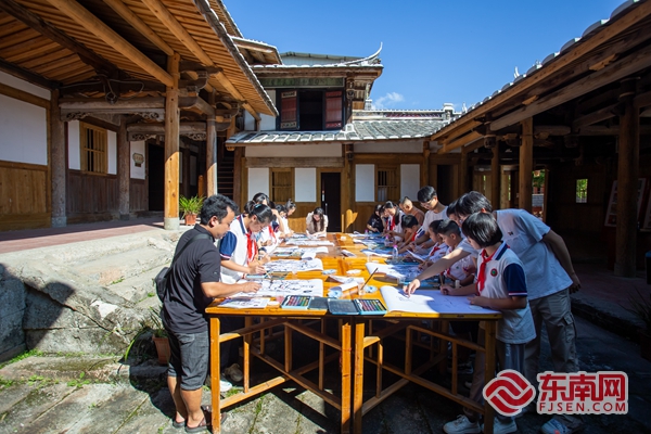 孩子们手绘红军故事。吴锦明 摄 东南网10月1日讯(本网记者 施远圻 通讯员 陈培芳)为庆祝中华人民共和国成立74周年,9月30日,泉州永春县举办“童心献礼迎国庆 革命薪火代代传”活动,通过“红军故事”绘画,向红军雕像敬礼等形式,以一片赤诚的红心致敬革命先烈,献礼祖国华诞。 在横口乡福鼎村的郭氏家庙,孩子们正围坐在一起听故事,这里是朱德红军革命旧址,在这片土地上曾发生过的红军故事让孩子们听得入神。1929年8月,朱德率红军在横口乡福鼎开展革命活动,红四军进驻福鼎村期间,朱德同志在郭氏家庙召开过两次群众大会,向当地人民群众宣传红军宗旨,传播中国革命道理。
