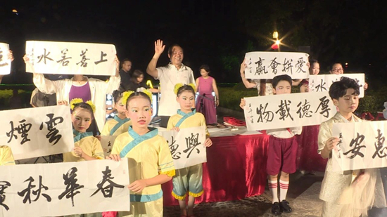活动现场 华灯初上,晚风怡人。9月30日晚,由县委宣传部、县文旅局、县文联、螺城镇文化站、惠安县喜爽文化艺术发展有限公司联合举办的“厝边的艺术”惠民演出活动之“迎中秋·庆国庆”——“厝边的艺术”晚会在螺城镇溪滨公园精彩上演。 活动在书法家王平山的挥毫泼墨中拉开序幕。随后酷炫的架子鼓表演、独唱《我们爱中华》、舞蹈《童年的柚子灯》、诗歌朗诵《中国好少年》、古筝演奏《兰亭序》等精彩节目接连上演,赢得现场观众的阵阵喝彩和掌声,许多周边居民也被吸引而来。