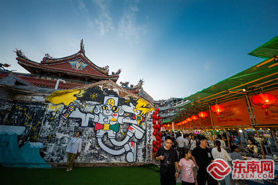 涂鸦墙吸引市民、游客拍照打卡。鲤城区融媒体中心 供图 在市集入口处,一整面环形涂鸦墙吸引众人打卡。据介绍,该作品由艺术家月下MOON打造,他以废旧墙体为纸,以泉州元素为蓝本,将整面环形废墙变为艺术作品,十分吸睛。 沿“龙身”行走其间,各个摊位灯火明亮,商品琳琅满目;行至下一个牌坊处,只见20个小吃摊位分列两旁,汇聚了蒜蓉枝、牛三宝、拳头母、牛肉羹、牛肉丸、土笋冻、姜母鸭等本土特色小吃,现场阵阵飘香,吃客络绎不绝。据悉,小吃市集将持续至10月2日,感兴趣的市民要抓紧打卡。 而在另一头牌坊“四门学士”处,芥子书屋发起的第一届泉州“喷泉”书市,来自全国各地的知名书店、品牌独立书店前来参加,在烟火闹市之中,又辟出一片读书静地,体验感十足。 据了解,此次市集由鲤中街道办事处、鲤城区文旅局、鲤城文投集团、泉州农商银行主办。市集为期1个月,国庆假日期间,不仅有乐队、歌手、非遗等常态化演出互动,还有灯笼装置艺术展、画展、短片展映等活动,内容丰富,让市民游客“沉浸式”逛市集、看演出、品美味。