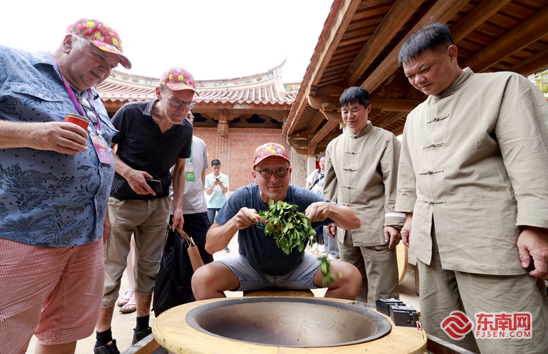 斗茶活动现场。东南网记者 陈培源 摄 东南网10月14日讯(本网记者 陈培源 黄雨昕 通讯员 许艺燕)为弘扬安溪铁观音“双世遗”文化,展现安溪铁观音“一茶三香”的独特魅力,提高安溪铁观音国际影响力和美誉度,10月14日上午,安溪县组织参加第12届中国国际民间艺术节的各国艺术家、驻华使节等150多人,开展铁观音斗茶、品茶、制茶体验活动。 据介绍,此次活动,安溪县组织乌龙茶(铁观音)制作技艺国家级非遗传承人、安溪铁观音大师、安溪铁观音名匠等共36位茶人,汇聚安溪最顶尖茶产业领军人才,为各位外国友人提供现场讲解、技艺演示服务,以重体验、乐参与、接地气的形式,营造宽松、融洽的斗茶、制茶体验氛围,让各国友人享受最纯正的安溪制茶技艺及斗茶、品茶习俗。