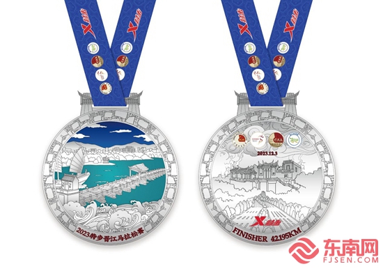 2023特步晋江马拉松赛完赛奖牌。主办方 供图 值得一提的是,本届晋马将在安平桥及草庵(摩尼光佛)两个世遗点周边组织丰富多彩的文旅活动,展示晋江文化旅游活动魅力,让跑友得到更多参与感和获得感。 发布会上还公布晋马完赛奖牌和参赛服。其中,奖牌呈圆形,寓意着阔别重逢的圆满。奖牌正面中央以写实的方式呈现安平桥的壮美景观,蓝天白云下,浪花飞扬,船舶从晋江出发,带着使命和希冀奔赴远方,与世界激情相拥。奖牌背面上半部分是草庵的建筑外观,下半部分是“最美赛道”世纪大道,美人树林立。奖牌外圈镶嵌着“出砖入石”的纹饰,奖牌挂耳是“燕尾脊”,两者都是闽南传统建筑特色,进一步彰显了晋江的地域文化特色。参赛服由特步设计开发,服装正面印花为“爱拼敢赢”,背面印花为“畅跑海丝路,晋马世遗情”,服装正反面底部被浪花所环绕,代表千年前的海丝路从这里启航,传颂着晋江敢为人先、生生不息的奋斗精神。 现场,还举行了2024晋江农商银行“穿越三山”越野赛冠名赞助商战略合作签约仪式。作为闽南地区知名城市轻越野比赛,2024晋江农商银行“穿越三山”越野赛将于2024年3月10日在福建晋江举行,搭建全民健身互动和交流平台,展示大美晋江。 自2016年创办以来,晋江马拉松的赛事水平和影响力不断提升。2017年,晋江首次举办全程马拉松即荣膺铜牌赛事,2018年获银牌赛事和特色赛事两项殊荣,2019年更是荣获金牌赛事称号,吸引了20个国家和地区、近1.5万名跑友参加,创造了新的赛会纪录。 近年来,晋江以打造中国体育城市为目标,强化赛事谋划布局,引进举办了一批国际、国内有影响力的赛事。去年晋江举办了全国、省级赛事17项,连续落地NEST全国电子竞技大赛、中超联赛、WCBA联赛三大全国赛事,有力擦亮晋江体育城市名片,推动文体旅融合发展。 今年来,晋江持续加强赛事引进和举办,截至目前,已举办CBA常规赛、中乙联赛、国际大体联足球世界杯中国大学生足球代表队选拔赛、福建省2023年和美乡村篮球大赛、全国和美乡村篮球大赛东南赛区大区赛、晋江国际男篮精英赛等全国、省级赛事,精彩赛事轮番上演,掀起了一波波“体育热”“赛事热”。 “晋江马拉松赛是我市自主培育的品牌赛事,今年晋江马拉松赛在赛事主题、比赛路线、配套活动等方面进行了优化升级,将进一步提升赛事质量和民众参与度,让‘晋马’成为展现晋江、宣传晋江的窗口,也是晋江打造高品质Ⅱ型大城市的重要抓手。”晋江市人民政府副市长吴尊意如是说。 2023特步晋江马拉松赛由中国田径协会认证,福建省田径协会指导,晋江市人民政府主办,晋江经济报社承办,晋江市跑步协会、晋江市健跑协会、晋江市长跑协会支持。 |