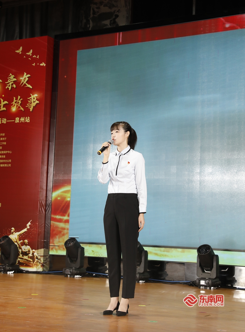 活动现场。东南网记者 陈诗婷 摄 东南网10月20日讯(本网记者 陈诗婷 通讯员 洪景昊 实习生 许娟娟) 昨日下午,全省“烈士亲友讲烈士故事”巡回宣讲泉州站在泉州师范学院举行。 宣讲活动伴随着雄壮的《义勇军进行曲》拉开序幕,6名烈士亲友通过穿越历史时空、超越历史云烟的讲解手法,动情讲述了八闽英烈为民族独立解放、为国家繁荣富强、为百姓守护一方平安作出奉献和牺牲的感人故事。