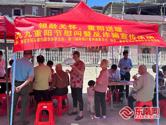 南安支行联合南安码头镇归国华侨联合会、南安码头镇码头社区居委会共同举办九九重阳节慰问暨反诈骗宣传活动。 厦门国际银行供图 供图
