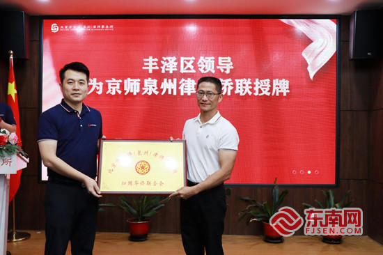 相关领导为京师(泉州)律师事务所侨联授牌。泉州市侨联 供图 泉州市侨联主席温锦辉表示,京师(泉州)律师事务所侨联作为泉州市成立的首家律师事务所侨联,是响应中国侨联《关于新时代加强基层侨联建设的指导意见》的具体举措,也是贯彻“大侨务”理念、拓展基层侨联组织的创新实践,具有重要的示范意义。 据了解,京师(泉州)律所设立了“涉侨法律服务站”,同时,还向泉州市侨联“侨爱联心”公益基金捐赠善款,用于支持涉侨法律援助工作,进一步拓展了为侨服务的方式和手段。下一步,京师(泉州)律所侨联将充分发挥专业优势,在普法宣传教育、依法维护侨益等方面,搭建平台、完善机制、创新手段,为归侨侨眷、海外侨胞提供贴心、专业的法律服务。同时,充分发挥海外资源优势,积极为引进海外人才、资金、技术和智力服务,为促进海内外各领域交流与合作作出贡献。 |