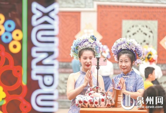 两名来自成都的“川妹子”直播蟳埔女文化体验 (林劲峰 摄) 泉州网11月15日讯(记者 王金植)“梳头头髻圆,爱水蟳埔姨。阔裤大裾衫,头花插歆歆。”记者昨日从市文旅局获悉,从年初至今,泉州“蟳埔女”抖音话题播放量突破10.5亿次。今年以来,以“簪花围”为主要特色的蟳埔女文化吸引了五湖四海宾客的目光,掀起了一波又一波打卡热潮。众多文化名人、影视明星频频来泉,在名人明星流量的加持下,世遗之城泉州火爆“出圈”。来自海内外络绎不绝的游客纷纷前往东海街道蟳埔社区体验簪花围,让这一传统民俗大放异彩。 明星效应带火蟳埔女文化 1月28日,国内杂志《上城士》发布2023开年刊大片,赵丽颖头戴簪花围的蟳埔女造型惊艳了网络,杂志抖音号发布视频光点赞量就有98.1万。 赵丽颖的明星效应在网络上迅速掀起了一场持续至今的“蟳埔女”文化热潮,把这个沉寂千年的闽南小渔村送上了互联网热搜。 之后,王冰冰、毛晓彤、赵雅芝、沈梦辰、邹市明、陈意涵、黄圣依、陈都灵等来泉州体验,蟳埔女头饰簪花围刷爆各大社媒平台,全国各地乃至国外的许多游客慕名前来体验。“流动的花园”吸引的不仅是爱美的女士,不少男士、网红男博主们也纷纷“尝鲜”。蟳埔村的村民们千年来的营生路径骤然新添生机,他们中的很多人从渔场转战网络,成了在互联网浪潮中迎风招展的“讨海”人。 泉州也趁热打铁,通过在抖音和小红书等平台线上直播和吸引游客到线下体验相结合的方式,传播蟳埔习俗。蟳埔社区簪花围体验馆甚至开办到了厦门、漳州、福州等周边城市,拉动餐饮、酒店、民宿等产业发展。 “众多文化名人、影视明星频频来泉州,体验蟳埔女头饰簪花围,让蟳埔女火速‘出圈’。”市文旅局有关负责人介绍说,这些文化名人、影视明星本身就自带流量,蟳埔女凭借名人明星的流量迅速提高关注度。这也进一步打响了蟳埔女文化品牌,拉动了泉州的旅游市场。 |