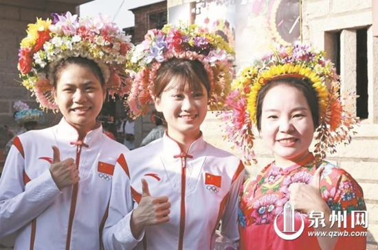 亚运会冠军体验簪花围 (黄丽泳供图) 千年渔村文化积淀深厚 蟳埔的女性,无论老少,都有“戴簪花圈,插象牙筷”头饰的习惯,俗称“簪花围”。戴在头上,就像是一座春意盎然的“小花园”,世人称赞她们是“流动的花园”。 蟳埔女是福建“三大渔女”之一,有着自身独特的视觉标识和积淀深厚的文化内质。蟳埔女的服饰头饰、生活习俗及宗教信仰都被原汁原味地保留下来,成为民俗研究的活化石。2007年,“蟳埔女习俗”被列为国家级非物质文化遗产保护名录。 头发系上红绳,盘于脑后,穿上一支骨髻,然后再将各色花朵,扎成整齐的花环圈戴在脑后,这就是传承数百年的簪花围。这样独特的头饰搭配上浓浓渔村烟火气的服饰形成的蟳埔女造型,是当地流传至今的古老传统,也是古代海上丝绸之路留下的文化印记。 头簪鲜花,身着彩衣,悠扬的嗓音在海风中飘荡,蟳埔女以海为生。潮落时,大片的海蛎田浮现在海面上,就成了他们施展的一方天地。 如今这里依然可见的蚵壳厝,还有游客和蟳埔女头上戴着的明媚鲜花,既展示着这座小渔村悠长的历史,也焕发着蓬勃朝气。 蟳埔村的“火”并非偶然,而是海丝文化积淀的结果。拥有千年历史的小渔村不简单,不仅保留有明代鹧鸪巡检司遗迹,还有古老闽越文化、唐宋·海丝文化遗存,蚵壳厝、顺济宫等古建筑群,以及簪花围、妈祖巡香等非物质文化遗产集聚于此,成为泉州文化保护的重要成果之一,持续向世人展示着世遗之城的独特魅力。 |