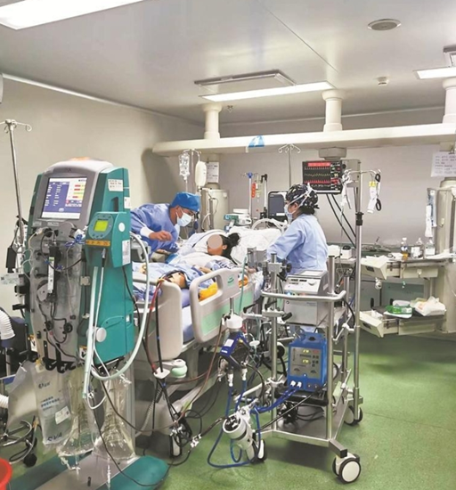 医护人员照料治疗中的年轻患者 午后暖阳洒在院子里,经历了九死一生的小菊(化名)抱着8个月大的儿子尽情地享受着这来之不易的惬意时光。一个多月前,因暴发性心肌炎合并多脏器功能障碍综合征,小菊命悬一线。危急关头,经泉州市第一医院重症医学科ECMO(体外膜肺氧合辅助心肺复苏技术)团队全力救治,小菊最终转危为安,并康复出院。据悉,小菊成为泉州市实施的首例清醒状态下ECMO支持治疗的患者。 突发重病 年轻母亲命悬一线 “医生,我胸口很闷,喘不上气。”已经持续发高烧2天的小菊被家人紧急从安溪当地医院转诊至泉州市第一医院急诊科。经过该院多学科紧急会诊,小菊被确诊为急性暴发性心肌炎,伴心源性休克、三度房室传导阻滞以及急性肾损伤……病情危重,需立即收住重症医学科。 入住重症医学科后,林天来主任、丁志荣副主任带领团队制定了综合治疗方案。同时,紧急联系心内科为小菊安置临时人工心脏起搏器,避免其发生心脏骤停。 丁志荣说:“暴发性心肌炎是心肌炎的一种严重类型,起病急骤,进展迅速。患者如果晚来医院几个小时,随时都会有生命危险。” 小菊今年22岁,已经是2个孩子的母亲,他们一个2岁,一个才8个月大。对于医护人员而言,挽救小菊的生命,等同于挽救其整个家庭。 然而,即便安装了临时心脏起搏器,小菊的情况仍不乐观,要启动ECMO才有更大的机会挽救她的生命。据悉,ECMO被称为膜肺,或者人工的心或者肺,是心脏和呼吸危重症治疗的一种设备和技术,主要用于重症心肺功能衰竭患者,在医学界素有“魔肺”“终极救命神器”等美誉。ECMO是将血液从体内引到体外,经膜肺氧合后再用血泵或体外循环机将血液灌入体内,对一些循环或呼吸衰竭的病人进行有效支持,为心、肺功能的恢复赢得宝贵时间。ECMO开机费用较高,家属的支持和配合十分重要。“没关系,只要能救命,该上就上。”小菊丈夫的一席话,让医护团队信心倍增。 小菊入院治疗时恰逢国庆假期,除了值班医护人员,ECMO团队核心成员大部分都在休假。“好的,我这就出发。”“没问题,我马上就到。”10月1日临近中午12时,值班医护人员逐一给正在休假中的ECMO团队成员打去电话,所有人都毫不犹豫地表示立即返岗。不到半个小时,6名医护人员全部集结到位,抢救工作随即开始。 清醒状态 ECMO治疗救回一命 是否在患者清醒状态下进行ECMO治疗成了医护团队考虑的关键。据悉,清醒ECMO是近年来提出的一种新的应用策略,指ECMO在没有气管插管、清醒和能够自主呼吸患者中的应用。丁志荣说:“小菊虽然心功能差,但面罩吸氧下血氧还可以,暂时不需要气管插管接呼吸机辅助呼吸。沟通治疗方案时,她非常清醒,对我们的治疗方式,也表示同意且愿意配合。这就意味着小菊是泉州市在全程清醒状态下进行ECMO治疗的首例患者。” 时间就是生命!预冲管路、穿刺置管……团队成员配合默契,一切都有条不紊地进行着。半个小时后,ECMO开始运行,大家都屏息等待,暗红色血液从患者体内经管路流出,而充满生命希望的鲜红色血液则源源不断由另一端回输至小菊体内,小菊的胸闷症状明显改善。在ECMO开机的前两天,小菊的心脏及肾脏几乎处于“不工作”的状态,经过持续的ECMO等综合治疗,她的自主心律逐渐稳定,不再依赖临时起搏器带动,心脏的跳动也逐渐有力。经过ECMO团队5天5夜的奋力抢救,小菊最终转危为安,经过一段后续治疗及康复锻炼,顺利出院。 林天来说,小菊目前还在哺乳期,可能是因为产后要照顾两个孩子,身体休息不够,导致免疫力下降,继而感染了病毒,发展成为暴发性心肌炎。所幸,ECMO团队介入及时、多学科紧密协作,日夜细心守护最终为她赢得了生机。 “住院期间,医护人员对我特别照顾,真的非常感谢他们。”小菊坦言自己真的非常幸运,是医护人员给了她第二次生命。为了表示感谢,11月5日,小菊在爱人的陪同下,一同来到泉州市第一医院,为重症医学科团队送去了一面写有“医德高尚暖人心 医术精湛传四方”的锦旗。(泉州晚报记者 苏凯芳 通讯员 黄幼佩 文/图) |