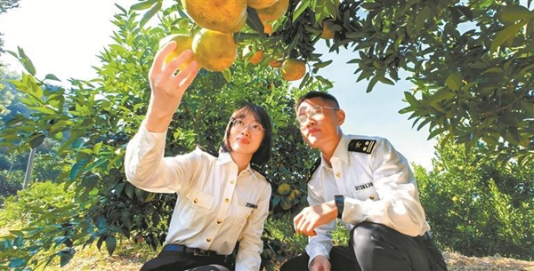 海关关员对出口芦柑果园开展实蝇监测 本报讯 (记者刘倩 通讯员辜馨豪 黄忠族 李津凯 文/图)冬来橘满香,丰收采摘忙。眼下正是永春芦柑的集中采收期,在福建永春县的果园里,果树上挂满芦柑,果农们正加快芦柑的采收、贮藏、商品化处理、加工装运。11月23日,经泉州海关快速检验检疫合格后,泉州聚富果品有限公司的一批25吨永春芦柑通过“专用绿色通道”顺利出口马来西亚。 数据显示,2023—2024年芦柑出口产季自11月16日启动以来,已有96批次、2403吨的永春芦柑出口东南亚等“一带一路”共建国家,同比分别增长31%、33%。本产季出口将持续到明年4月底,预计出口量将达5万吨。 永春县是“中国芦柑之乡”,系福建最大的宽皮柑橘种植和出口基地,现有注册果园、注册包装厂126家,柑橘种植面积12万亩,总产量约28万吨,其中近20%供出口。近年来,永春县柑橘出口产业形成以芦柑为主、沃柑等品种协同发展新格局,已成为永春县农业的优势产业和主要创汇来源,促进农民增收,助力推进乡村振兴。2022—2023产季,永春柑橘出口量为3.7万吨,热销马来西亚、新加坡、印度尼西亚等“一带一路”共建国家。 “经过我们前期调研,发现本产季芦柑出口量预计将比上产季增长30%,加之芦柑属易腐烂商品,出口时间急、时效性强,国外检疫要求高,于是,泉州海关加强与永春农业等部门协作,成立了‘永春芦柑出口专项工作专班’。”泉州海关相关工作人员表示。据了解,目前泉州辖区注册登记果园100%纳入农业部门“一品一码”可追溯系统,进一步夯实质量安全基础,并针对新产季开始前新增申请出口注册登记果园、包装厂数量多等情况,实行预约加班服务,全面提高通关效率,促进扩大出口。 泉州海关驻安溪办事处永春监管科科长陈劲志介绍:“今年新上线的海关属地查检业务管理系统,让企业实现了在线预约查检、在线申请电子底账、在线申请检验检疫证书,压缩通关出证时间20%以上。 “东南亚华侨华人,每到过年都要吃永春柑橘,寓意甜甜蜜蜜、大吉大利。永春芦柑酸甜适口,深受东南亚消费者的喜爱。”多年深耕东南亚水果市场的永春聚富果品有限公司总经理刘光淮开心地说,永春芦柑在当地竞争力强,单价比其他产地高20%以上。 |