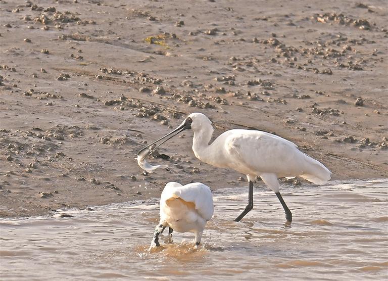 黑脸琵鹭在水中觅食 (陈文森 摄) 分析 环境向好鸟类增多 泉港区自然资源局副局长张澄海表示,工作人员日常会带队组织巡护,组织观鸟活动,树立爱鸟护鸟观念,营造爱鸟氛围。在行动上,他们请泉州市观鸟学会人员到现场观测,明确保护的重点。此外,他们近年来注重对于盐田、湿地以及母亲河坝头溪的保护,还沿着坝头溪建了5个主题公园。“这样的湿地公园很容易吸引鸟类到此栖息,对吸引更多鸟类到泉州起了很大的作用。”吴轲朝说,各县(市、区)可以学习此类做法,更好地保护鸟类,保护生态环境。 来自泉港的庄绍坤经常在泉港区域内观鸟,他表示:“近年来随着生态环境变好,鸟类的数量明显多了,也观测到了更多的种类。” “今年来到泉州的鸟类不管是从种类还是数量上都呈增长趋势。迁移过来的越冬候鸟越来越多。”不少观鸟爱好者表示,这得益于泉州区域内互花米草的清理和环境逐渐向好,食物链也越来越丰富,来到泉州的鸟类就越来越多。“对鸟类来说食物最重要,我们这里食物链丰富,鸟类食物多,加上温度适中,就吸引了越来越多鸟类来到我们这里。”吴轲朝说,随着泉州的生态环境建设,相信会吸引更多的鸟类来到泉州做客。 日前,在泉州森林公园上空迁移过一群蛇雕、凤头鹰等猛禽,市民日常生活中也可以留意观看。吴轲朝提醒,野生鸟类比较怕人,观鸟爱好者在观鸟时要保持适当的距离,尽可能保持静音,不要做高声喊叫、投喂食物或投掷石块等干扰鸟类正常活动的行为。同时,去户外尽可能不要穿红色等艳丽的服饰,最好穿绿色等服饰,才能尽可能观测到更多鸟类在自然状态下的形态。此外,广大市民可以关注伤害鸟类的行为,若有这类行为可向公安部门或当地林业部门举报,共同营造良好的生态环境。 |