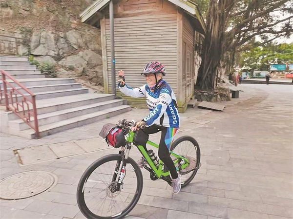 74岁的林津津是老年骑游队里年纪最大的女队员 七旬夫妻队友 乐享骑行生活 巾帼不让须眉,这支老人骑游队伍里也有不少“女将”。 今年74岁的林津津是这支队伍里年纪最大的女队员,也是最早的女队员。“我算是入门晚的,但那时候很少有女性加入车队。”林津津告诉记者,她从小就喜欢骑车,感觉浑身充满力气。2007年,看到有人在路上骑行,她四处打听得知泉州有一支老年骑行队,便主动申请加入,当时她已经58岁。 “第一次骑行就骑到了石狮,第二次直接去了厦门。骑行的路基本没有路灯,不好走。”林津津回忆,因为速度不同,队友很难相互等待,一般是她在后面慢慢骑,最后到目的地与他们会合。 在一次前往云南昆明的途中,她骑行至一座山坡上时,遇到了一名手拿长棍拦路的乞丐。男队员都骑远了,路上只有她一人。“当时我很慌张,但是如果不往前骑,又没法与队员们汇合。”正在她手足无措之际,一辆汽车恰好从身边经过,她顺势左拐,骑到汽车左侧,顺利躲过了那根长棍。这件事令她至今印象深刻,她说,骑行是有风险的,希望广大骑行者在享受骑行的同时,也要提高安全意识。 据了解,这支队伍里还有不少骑行夫妻档。