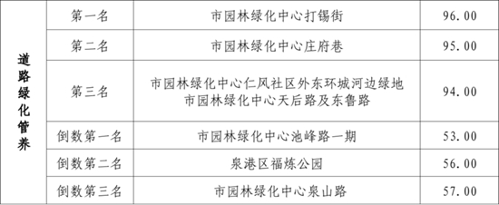 组织对中心城区住宅小区生活饮用水二次供水设施管理及今年第二季度水质检测、水池清洗情况进行专项考评,共考评二次供水管理单位215个、发现问题665处。考评发现多数住宅小区能够定期做好蓄水池的清洗、消毒工作,并按时做好水质检测,水池清洗、水质检测率分别为85.65%、83.80%,与上一期持平;水泵房设施日常管理、维护工作落实到位,存在问题较少,如:鲤城区中骏四季阳光、滨江花园城E区,丰泽区崇德华庭、东海湾雅园,洛江区康桥学府、桥南花苑等。但部分二次供水单位未能定期做好蓄水池的清洗、消毒工作及水质检测;管理人员相关业务不熟,“四害”防制、杂物管理不到位等问题仍较多,如丰泽区宝德公寓、丰泽区龙兴小区、鲤城区聚鑫商业广场小区。 道路绿化管养专项考评情况