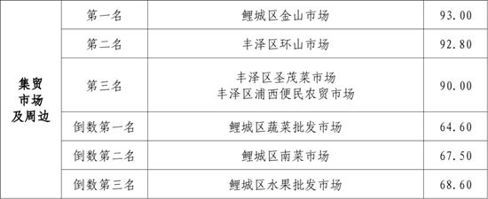 共抽评城区公厕84座,发现问题452处。本月共15个公厕考评成绩达90分及以上,其中鲤城区宫后巷公厕、泉州开发区仙公山1号公厕、鲤城区一堡公厕、洛江区桥南社区刘氏家庙公厕等厕容整洁,管理良好,名列前三。其余抽评公厕80分区间52个,70分区间15个,70分以下2个。部分公厕精细化管理水平仍不高,保洁存在盲区,厕内设施设备积尘、脏污,蹲位、便池尿垢等问题仍普遍存在,如丰泽区云谷社区建材城边(石埠)公厕、泉港区陈庄公厕、丰泽区凤山社区上坑小组公厕、鲤城区石崎社区广兴后公厕。 集贸市场