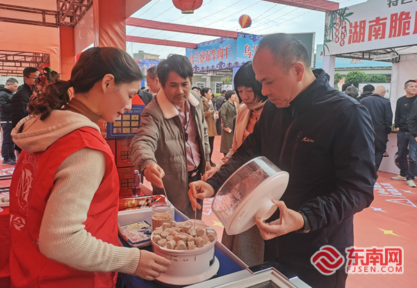 嘉宾品尝鱼卷美食。主办方 供图 东南网12月2日讯(本网记者 林杰)12月1日,为期5天的八闽特产消费节暨第二届崇武鱼卷文化节举办。活动以“崇武鱼卷”为主题,并结合特色小吃美食、网红游乐等丰富多样的活动环节,集潮购、潮玩、潮食于一体,向来自各地的游客朋友和广大群众呈上独具特色的鱼卷文化盛宴。 本次活动由惠安县工业信息化和商务局、惠安县文化体育和旅游局、惠安县农业农村局、惠安崇武镇人民政府指导,惠安县崇武镇食品加工协会、福缘鲤品(福建)供应链有限公司联合主办。 近年来,崇武以乡村振兴为抓手,以特色产业为基础,以海洋渔旅融合为支撑,打造崇武全域旅游“新样板”,深入挖掘崇武旅游文化和鱼卷美食资源,全方位推动旅游与文化、产业的深度融合,打造各类具有地方特色的伴手礼,促进名优特农特色产品和美食文化的传播和融合,带动崇武鱼卷产业做大做强,让“崇武鱼卷”走出惠安、走向全国。