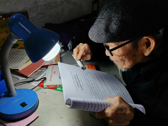 “支部书记给我们几位在家的老同志都送来了学习资料。”