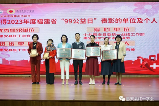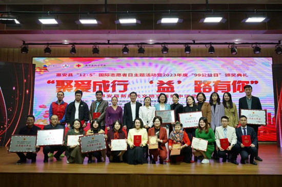 为深入学习贯彻党的二十大精神,大力弘扬志愿服务精神,展现中华民族守望相助、乐善好施的传统美德,12月5日,惠安县在新时代文明实践中心开展“聚爱成行 ‘益’路有你”国际志愿者日主题活动暨2023年度“99公益日”颁奖典礼。 本次活动由惠安县新时代文明实践中心、惠安县志愿服务总队指导;县委宣传部、县委县直机关工委、县委文明办,县民政局,团县委、县科协、县红十字会,螺城镇、螺阳镇共同主办;县融媒体中心、县社工总站、县红十字会志愿服务队协办。县人民政府副县长兼县红十字会会长陈剑虹,以及主、协办方领导和县直相关部门领导、镇分管领导,“99公益日”爱心单位及优秀个人代表,各志愿服务组织代表,部分村(社区)代表等200余人参加了活动。