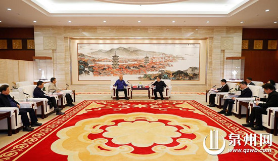 7日,泉州市长蔡战胜与来泉考察的澳门福建同乡总会会长、澳门金龙集团董事长陈明金一行座谈。蔡战胜表示,泉州把城市建设作为高质量发展主阵地,实施“抓城建提品质”等系列专项行动,城建成效初显,民生福祉不断提高。希望大家要多融入家乡高质量发展浪潮,发挥资源优势,积极牵线搭桥,踊跃投资泉州,共享发展机遇、共创美好未来。副市长陈小辉参加。