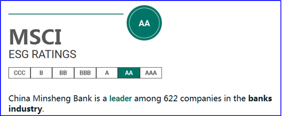 MSCI评级报告显示,民生银行在公司治理、隐私与数据安全、金融可及性、人力发展等关键议题的管理表现均处于行业领先水平。MSCI ESG评级从BBB级跃升至AA级,此项成绩是民生银行可持续发展战略深度落地的有效反馈,反映出国际权威机构对民生银行ESG管理水平的高度认可,更体现出资本市场对民生银行可持续发展价值的充分肯定。