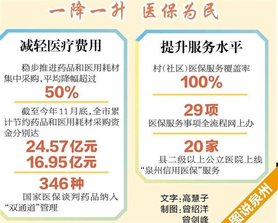 健全保障体系方面,今年起,泉州市实施基本医保待遇新规,降低城乡居民医保住院和特殊门诊起付标准,提高医保支付比例、大病报销比例、生育医疗费用补助标准,提高城乡居民医保待遇保障水平;优化城乡居民医保门诊特殊病种政策,加强城乡居民医保门诊保障能力;全面实施重特大疾病医疗保险和救助制度。 减轻医疗费用方面,进行“三医”协同发展和治理。稳步推进药品和医用耗材集中采购,平均降幅超过50%。截至11月底,全市累计节约药品和医用耗材采购资金分别达24.57亿元和16.95亿元。将346种国家医保谈判药品纳入“双通道”管理。深化医疗服务价格改革和医保支付改革,提前一年实现符合条件的医疗机构DRG付费全覆盖。 维护医保基金安全方面,开展打击欺诈骗保专项整治工作,实现全市1901家定点医药机构日常稽核全覆盖;推动全市所有二级及以上定点医疗机构接入并使用医保智能审核事前提醒系统,今年以来,全市通过智能监控拒付和追回医保资金2716.05万元。 提升医保公共服务水平方面,实现全市村(社区)医保服务覆盖率100%;建成全国首个面向大陆所有台胞提供医保/健保“双向”服务平台;加快发展“智慧医保”,实现29项医保服务事项100%全流程网上办、全市定点医药机构跨省直接结算全覆盖;打造“医保+金融”信用就医惠民新模式,20家县二级以上公立医院上线“泉州信用医保”服务。(泉州晚报记者高慧子) |