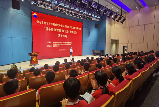 深入开展主题教育,宣讲好党的创新理论(县委宣传部供图) 理论学习常抓常新。印发进一步规范中心组学习制度的通知,建立健全通报点评、列席旁听、中心组学习“五个一”等学习制度,推动各级党委(党组)理论学习中心组学习质效大幅提升。 如何让党的创新理论“飞入寻常百姓家”?惠安在实践中交出精彩的答卷。 “理论周周讲”入心入脑。创新打造理论“周周讲”课堂,健全县、镇、村、点四级理论宣讲体系,推出“菜单式”理论宣讲服务,形成志愿者宣讲、百姓宣讲、文艺宣讲等28个宣讲小分队,组织开展各类宣讲活动800余场,推出理论《电波课堂》45期、“云”宣讲视频20个,涌现出“田间宣讲”“廊桥宣讲”“古厝宣讲”“渔船宣讲”等一批特色宣讲项目……一场场接地气、冒热气的宣讲,让党的创新理论传入千家万户,凝聚党心民心。 思政课堂生动鲜活。深入实施创新理论铸魂育人工程,积极探索“思政小课堂”与“社会大课堂”的联通互动,构建新时代大思政“惠”体系,通过“大”思政“小”切口,激发学生爱国情、报国志。 壮大主流舆论 惠安声音更响亮 时代的画卷,底色是人心,关键在舆论。一年来,全县宣传思想文化战线坚持围绕中心、服务大局,持续壮大正面主流舆论,用心用情记录惠安的奋斗图景和精神风貌,对外展形象,对内聚人心。 融合“全媒体”,主流舆论巩固壮大。深度融入县委、县政府工作全局,在社会万象中找到闪光点。围绕“争优争先争效”行动、“两看三比”“四个主题年”等重点工作,开设专题专栏上百个,推出系列主题海报101张、短视频240个、各类新闻报道6000多条,健全集中转发推送机制,一大批反映惠安美景特色、文化民俗、创新发展的融媒精品刷屏热传,让主流舆论凝聚人心,提振士气。