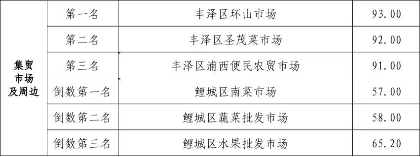 共抽评城区公厕88座,发现问题458处。本月共15个公厕考评成绩达90分及以上,其中泉港区植物园管理房旁公厕和锦绣公园固定式公厕,泉州开发区南山妙音寺公厕和崇惠街公厕,鲤城区旅游街公厕等厕容整洁,管理良好,名列前三。其余抽评公厕80分区间52个,70分区间15个,70分以下2个。部分公厕精细化管理水平仍不高,保洁存在盲区,厕内设施设备积尘、脏污,蹲位、便池尿垢等问题仍普遍存在,如鲤城区西街菜市公厕、丰泽区妙云街加油站边公厕考评成绩不理想。 集贸市场