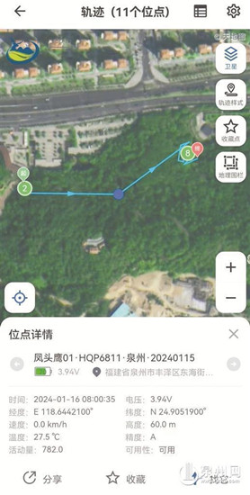通过发射器传回的放飞的凤头鹰情况 两批次共7只鸟佩戴发射器 为了更好地保护及研究鸟类迁徙,放飞之前,泉州市观鸟学会成员为3只鸟佩戴了GPS发射器。今后他们将通过收集数据,更好地揭示泉州地区候鸟的迁徙路线和规律,从而对它们进行有效保护;其次是对候鸟进行生物学研究等。 这是泉州第二批次为鸟类佩戴GPS发射器。2023年12月28日,泉州市观鸟学会、丰泽区自然资源局等单位,在桃花山放飞受救助的4只鸟,其中3只短耳鸮和1只红隼,它们均佩戴有发射器。加上此次3只,两批次共有7只鸟佩戴。 佩戴发射器是根据标记个体研究鸟类生活史、种群动态,特别是研究鸟类运动的一种研究方法。吴轲朝解释说,每只佩戴GPS发射器的鸟都有专门单一编号,每段时间都会发射其行动轨迹点位、飞行高度状态及体温等,研究人员可以准确掌握其救助康复后是否适应野外生存、健康情况及其活动区域。当然,不同的个体需佩戴不同重量的发射器,如夜间出行觅食较多的鸮类还需要特制的发射器。 从目前两批放飞的鸟儿反馈的数据与信息来看,它们的信号都有成功反馈,可以掌握到,目前放飞的鸟都是健康的。根据相关人员统计,鸟类佩戴发射器,一段时间后反馈成功率达到一半以上,就算是非常成功。 泉州市观鸟学会呼吁,若有市民遇到伤病鸟类,请及时报警或联系当地林业部门救助。(泉州晚报融媒体记者 廖培煌 黄艺芬 实习生 魏富城/文 吴轲朝/图) |