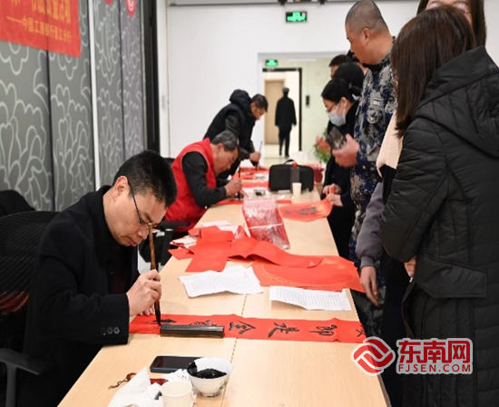 “工享年味,送万福进万家”活动现场。银行供图 东南网1月30日讯(通讯员 王榕香)兔摘紫桂辞岁去,龙驾青云迎春来。1月26日上午,在一片欢声笑语中,“工享年味,送万福进万家”书法公益活动在中国工商银行晋江分行营业部一楼大厅拉开了帷幕。 写春联、贴“福”字是我国的传统新春习俗。龙年春节临近,为弘扬中华传统文化,丰富客户群众精神文化生活,活跃金融文化氛围,营造喜庆祥和的厅堂气氛,中国工商银行晋江分行营业部邀请了三位书法家现场挥墨写春联,分行党委委员白炳捷带队与大家一起体验热闹的气氛,送上新春祝福,让员工和客户们感受到晋江工行的温情。 活动现场,书法家们一字排开,热情高涨,铺纸研磨,即席挥毫,多种书体各显神韵。一阵挥毫泼墨后,写出一副副反映美好生活的喜庆大红春联和最诚挚的“福”字,一句句美好吉祥的祝福传递着节日的喜庆,寄托着人们对新春的憧憬和向往,浓浓的年味、暖暖的祝福溢于字里行间。 不少来办业务的顾客也被热烈的气氛吸引,纷纷前来请书法家为其写春联。市民A先生率先排队拿到春联,脸上洋溢着开心,向我们分享了对新的一年的期待,“2023年收获满满,希望2024年平安顺遂,向新的目标奋进。” 市民B先生带着妻子和小孩来办业务碰巧赶上书写春联现场,他表示这场活动可以让小孩感受到传统书法的魅力,也能切身体会到浓浓的年味。而小朋友也向我们分享了她的喜悦,表达了对于未来可能收到的新年红包想要存到自己的“小金库”中,客服人员向其简单介绍了货币和开卡知识,帮助其树立积极向上的金融观念。 考虑到新年临近,正是各种电信诈骗的高峰期,网点特别安排客服人员在客户等待排队过程中,通过发放宣传手册,向大家普及个人养老金以及讲解不出租出借银行卡、不随便点击不明链接、警惕非法集资等防诈反诈知识,进一步提升了居民金融风险的防范意识,得到大家一致好评。 天寒地冻,温暖更弥足珍贵。排队拿到春联的市民C正带着孩子在工会驿站休息,她告诉我们这个小驿站为她提供了许多的便利,她带小孩出来办业务正巧手机没电了,驿站这边可以提供免费的电源,客服人员还送上的暖心的热水,她在排队的过程中,小孩还可以在这看书。她说:“不仅仅是热水暖心,服务更加暖心!” 接下来,工行晋江分行营业部将持续注重以文化为载体,推进推动高质量发展,用心做好客户服务,不断满足人民群众对美好精神文化生活的需求,积极履行社会责任,做有温度、有担当、有情怀的银行。