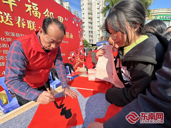 “桑榆志愿者”为群众送福。王延萍 供图 东南网2月1日讯(本网记者 陈培源 通讯员 陈全守 王延萍)铺纸、蘸墨、起笔……红纸翻飞间一幅幅遒劲有力清爽洒脱的新春祝福跃然纸上。临近春节,安溪县各个老党员服务站从室内走向室外,启动新春限定活动,他们化身桑榆志愿服务者,一件红色小马甲、一支毛笔、一瓶浓墨,用简单的装备为群众送上最浓的年味,在一笔一划中让年轻干部感知“廉”味。 桑榆志愿者组团送祝福 “春联是过年时所贴的红色喜庆元素‘年红’中一个种类,是具有中国特色的一种文学形式,是过年的重要习俗。”在安溪县城东社区党建文化广场,老同志们边写春联边向茶乡“少年家”们介绍春联的文化内涵。“每到春节期间,我们几个书法爱好者都组织写赠春联活动,一方面是借此机会对传统文化的传承和发扬,另一方面也可以发挥离退休干部的余热,不忘为人民服务的本色和初心。”洪爱读老同志说。 活动现场,热闹非凡。在春节来临前,安溪县委老干部局充分用好老党员服务站,不断充实活动内容,以县离退休干部活动中心“笔墨迎春 龙年赠福”书赠春联活动,辐射带动63个老党员服务站同步开展新春送福活动,120余名“桑榆志愿者”为群众送上新春“私人定制”的暖暖祝福3.6万幅。“每年我都来排队领取春联,老同志们干劲十足的状态鼓舞着我们的生活。”书赠春联活动得到了群众们的集体点赞。 |