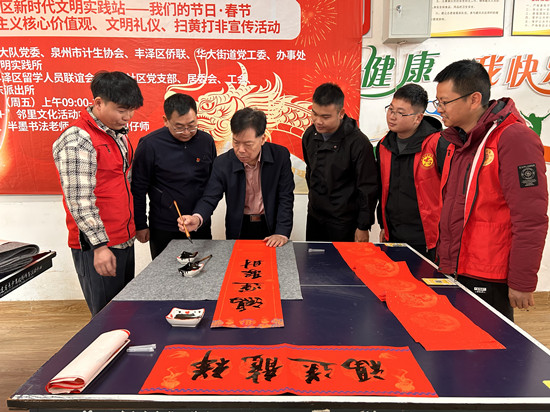 活动现场。主办方供图 东南网2月2日讯(通讯员 黄翔鹏)茅舍春回事事欢,屋尘收拾号除残。为营造社区节日氛围,让居民感受“年味儿”,2月2日,丰泽区华大街道地质社区联合福建省闽东南地质大队党委、泉州市计生协会、丰泽区侨联、丰泽区留联会等多部门,联合开展“迎新春 写对联、包饺子、送包子、党建共建、人才沙龙”等主题系列活动,向社区居民与社会各界送上节日的问候。 一大早,泉州市计生协会四级调研员刘友水携手泉州市半墨书法老师、福建省闽东南地质大队志愿者及爱心侨企包仔师等来到社区,在地质社区“党建+”邻里活动中心为居民写春联,包饺子、送包子,传递祝福;观看印尼归侨邱国栋老爷爷的精彩表演,共享人间小年欢乐。 |