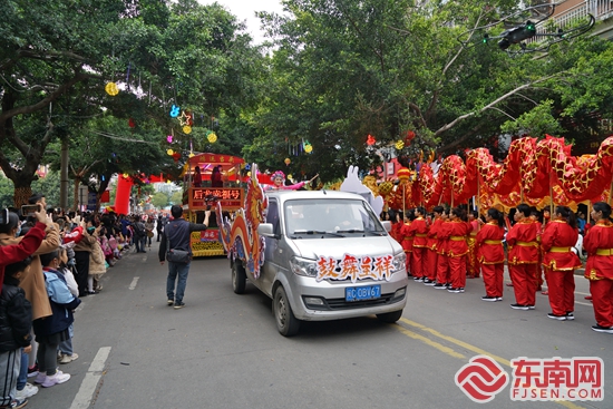 踩街队伍缓缓前行,群众夹道观看拍照。洪坤泽 摄 东南网2月3日讯(本网记者 黄雨昕 通讯员 洪坤泽)春节临近,年味越来越浓。2月2日,泉州市泉港区后龙镇举行了一场别开生面的“千人踩街闹新春”民俗展演活动,当地的民间艺人、群众欢聚街区,彩车巡游、舞龙、腰鼓、千人共舞等欢庆活动轮番上演,在喜庆的氛围中为市民和游客奉上文化盛宴。 |