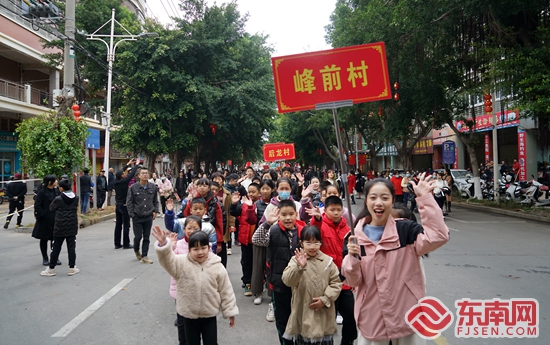 踩街队伍热情地向大家打招呼。洪坤泽 摄