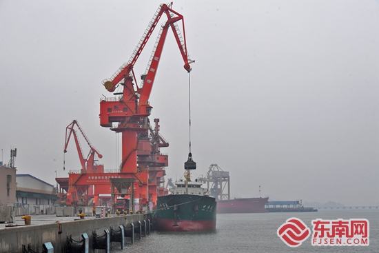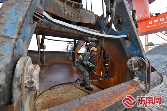 工人正在维修塔吊抓斗。洪坤泽 摄 东南网2月4日讯(本网记者 黄雨昕 通讯员 洪坤泽)近日,在湄洲湾南岸泉州市泉港区肖厝港区,中国籍散货船“中伟盛”轮满载5064.065吨小麦正靠泊3号泊位,码头塔吊来回运转,将小麦装车转运。 春节临近,港口忙碌不停。1月份,该港区完成货物吞吐量165.55万吨,其中外贸货物吞吐量86.93万吨。据了解,肖厝港区共有5个生产性泊位,岸线总长1324.2米,是泉州地区唯一直通铁路的港口。过去一年,肖厝港区完成货物吞吐量2396.36万吨,其中外贸货物吞吐量975.35万吨。