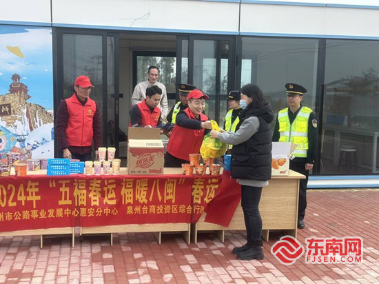 惠安公路志愿者们为过往司乘人员送上贴心服务和节日祝福。泉州公路中心惠安分中心 供图