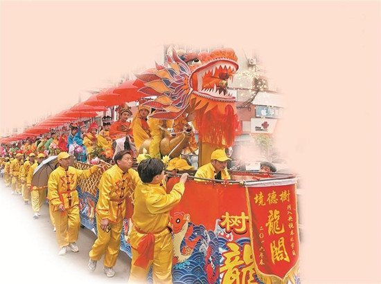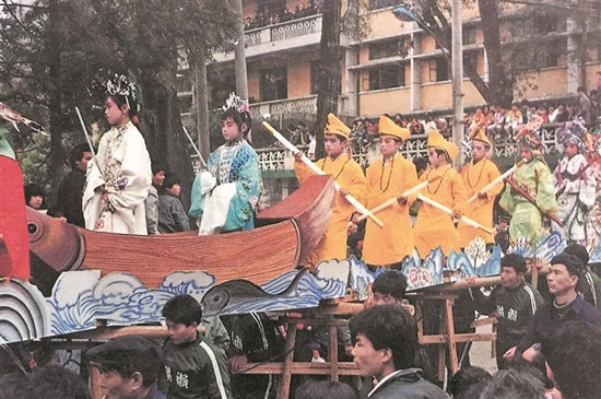 1990年,天香巡游活动中的洪濑蜈蚣阁,当时还是用抬的。(杨文灿 摄) 起源始于元朝的“流动戏曲” 洪濑龙阁的起源是什么呢?据南安市历史文化研究会会长黄荣周介绍,龙阁最早叫蜈蚣阁,是妆阁的一种,因形似蜈蚣而得名。古时洪濑是商贸文化发达的地区,民俗活动盛行。大致在元朝时期出现了洪濑天香踩街活动,依托天香巡游的发展,同一时期出现了蜈蚣阁。 在当时,人们将十几块至几十块木板连接起来作为阁身,木板称为阁棚,阁棚之间以活榫相接,连成一串,可灵活转动,因其节节相接,弯弯曲曲,形似蜈蚣,故名蜈蚣阁。阁棚上装置一高凳,上面坐着各家各户装扮成《三藏取经》《八仙过海》《桃园三结义》《关公保二嫂》等古代戏文人物造型的孩童。 每当巡游时,蜈蚣阁由成年壮汉抬着,旁立数人随时轮替,组成一列长长的队伍走街串巷。阁上的孩童粉雕玉琢,服饰缤纷,手持各种乐器、道具,做出多种身段,似一场流动的戏曲表演。巡游路上,前呼后拥,十分热闹。 后来,蜈蚣阁又广泛流传于泉州各县区及厦门、漳州等闽南一带及台湾地区。 演变 艺术性观赏性不断提高 在发展过程中,为赋予蜈蚣阁更美的外形和更好的寓意,人们为蜈蚣阁装饰上龙的头、身、尾,改造成龙的样貌,蜈蚣阁也随之改称为龙阁。木板也换成了更坚固的铁踏板。阁上的孩童也由古时清一色的男童变为男童女童皆有。 “抬龙阁是项体力活,很考验体力和技术。”树德寺管委会工作人员张德福回忆起小时候所见的抬龙阁场景说,当时龙阁长约32米,上坐32名孩童。抬的时候,每块踏板旁需要2名壮汉一起用力,“前进的节奏和拐弯时的幅度很考验大家的默契”。 随着时代的发展,在2000年左右,人力抬阁逐渐变为车载前行。龙头龙尾下搭载着自行车,阁身装着轮子,前头的人把控好方向,两旁的人轻轻扶着即可。后来,人们又给龙头安上了喷管,既可喷烟火,又可吐水雾。2016年,洪濑龙阁经过创新,在原有的基础上变得更具艺术性和观赏性,并亮相猴年春晚泉州分会场。2019年2月,以洪濑蜈蚣阁等内容为主的泉州妆阁入选第六批省级非物质文化遗产代表性项目。 从装饰到抬阁方式,龙阁发生了许多变化,不过,树德寺管委会会长侯添福认为,龙阁中包含的人们对美好生活的期盼与积极向上、团结奋进的精神并没有改变。 传承 孩童参与体验民俗魅力 “孩子们坐过龙阁有印象感兴趣,长大后就容易成为传承这项民俗的一员。”侯添福说,龙阁传承的特别之处在于让孩子也参与进来,让他们亲身感受传统民俗的魅力,在他们心中播下传承的种子。 “我儿子比我幸运多了,小时候我一直想坐龙阁都没机会。”洪濑居民黄玉凤告诉记者,小时候看龙阁出游的盛景至今记忆犹新。这次听说有坐龙阁的机会,她立马为儿子报了名。“希望他能亲身感受家乡这项流传数百年的民俗,也是帮我圆了小时候的心愿。” “我坐过一次,又酷又有趣,至今印象深刻。”今年34岁的刘伟斌说,8岁时他曾坐过一次龙阁。当时龙阁的主题是十八罗汉,为了形象逼真,他和小伙伴们都剃了光头。如今,他已成了家乡龙阁的“护持者”,每当龙阁出游时,他都会来帮忙。 为了更好保护和传承龙阁文化,2018年11月28日,南安市龙阁文化研究会在洪濑镇正式成立。 黄荣周认为,龙阁凝聚了洪濑人民的智慧和美好心愿,表达了作为龙的传人积极向上、团结奋进、建设美好家园的精神。在传承和保护龙阁技艺与文化时,要在发展中创新,在创新中发展,让洪濑龙阁沿着“海上丝绸之路”走出中国、走向世界。(泉州晚报融媒体记者 杨泳红 文/图) |