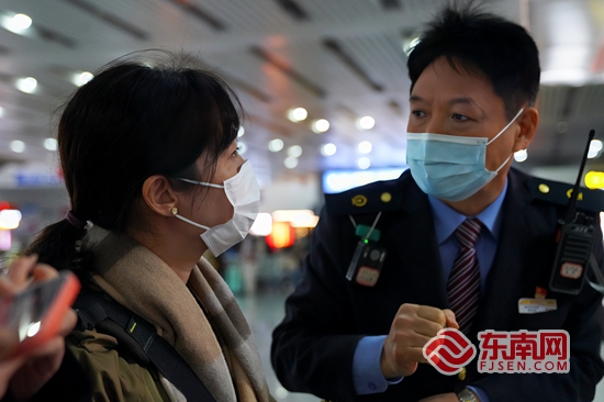 泉州站客运员韩闽安引导旅客有序乘车。陈珊娜 摄 东南网2月6日讯(本网记者 谢玉妹 通讯员 黄武雄)春运以来,泉州站客流量持续走高,日均发送旅客达到3万多人。在该站4—5站台,今年50岁出头,身高近一米八的客运员韩闽安,身手动作敏捷,嗓门声音洪亮,不停地奔忙着服务旅客。 今年春运,韩闽安给自己定下“三个小目标”:尽心服务,让旅客出行安心、顺心、舒心,以实际行动践行“平安、有序、温馨”春运要求。 “出行安心——确保旅客安全出行是我最大的责任” 泉州是福建省的经济大市,汇聚众多民营制造企业,吸引来自全国各地的务工人员。务工人员群体乘车有个特点:大包小包多,各种干活的工具多。 节前,由厦门北开往重庆北的D2232次是车站的大客流车次之一,候车室放客后,旅客经地下通道,须乘坐电梯或者爬步梯到达站台乘车。对于携带行李较多、较大的务工人员,几乎都选择乘坐电梯,也因此容易引发电梯拥挤。 韩闽安每次负责这趟车作业,将监控电梯运行作为重点注意事项,遇突发情况及时采取措施,防止电梯伤客。近日,一名携带长杆工具旅客在乘梯过程中差点引发集体跌倒,韩闽安见状第一时间果断切停电梯,迅速组织恢复秩序。“扶梯只要有一名旅客跌倒,就会引发多米诺骨牌效应的连片跌倒,必须第一时间果断采取措施,否则后果会很严重。”韩闽安说。 客运站消防安全是大事,一旦发生消防事故,容易造成旅客群死群伤。今年年初,韩闽安发挥他取得消防国考中级技能资格的专业优势,平时留意观察旅客聚集的候车室、售票厅等场所灭火器、消防栓的设置位置、个数、类型等,经常预想一旦发生火灾如何灭火和组织旅客逃生。