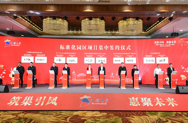 标准化园区项目集中签约仪式 欧阳荣华 摄 此次招商大会中,共现场签约15个项目入驻泉惠精细化学品产业园、南王科技产业园等10个标准化园区。签约项目涵盖新材料、新能源、装备制造及商贸服务等多种业态,有力推动全县重点产业链不断延伸,构建更为完整的产业生态圈。现场还举行政银企集中签约授信仪式,惠安县人民政府与中国工商银行股份有限公司泉州分行等6家银行机构签署战略合作协议;银企融资授信5个标准化园区,为惠安县高质量发展注入强劲动力。 本次活动由中共惠安县委、惠安县人民政府主办。活动现场,围绕“筑巢引凤 惠聚未来”主题,众学者专家、行业翘楚、企业顾问及博士菁英就惠安的建设和发展,参与了主旨演讲等活动,为家乡发展献计献策、为招商引资牵线搭桥。现场还举行了惠安县投资环境推介、标准化园区产业招商推介、中金基金启动仪式、惠安县“招商引才机构”授聘仪式等系列活动。