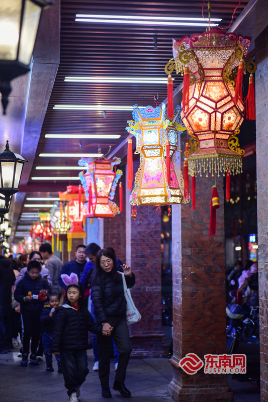 中山路两侧骑楼悬挂着传统花灯。东南网记者 林婕 摄 |
