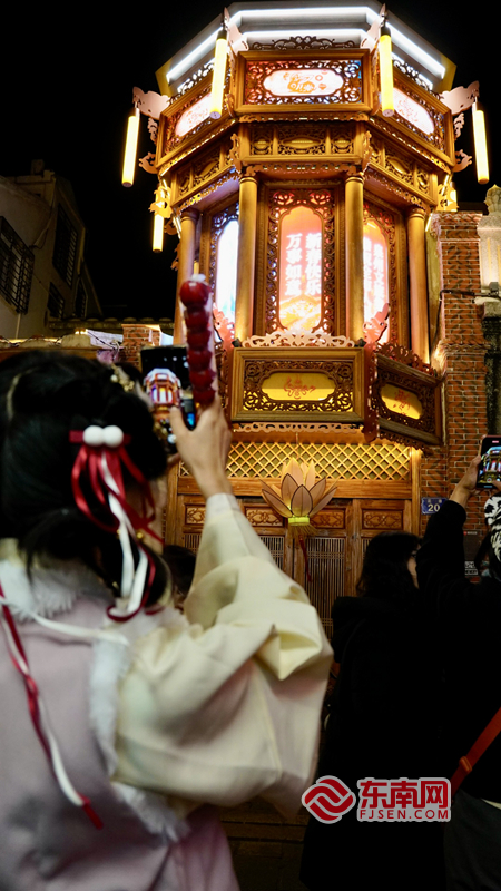 市区中山路,市民观赏花灯。东南网记者 林婕 摄